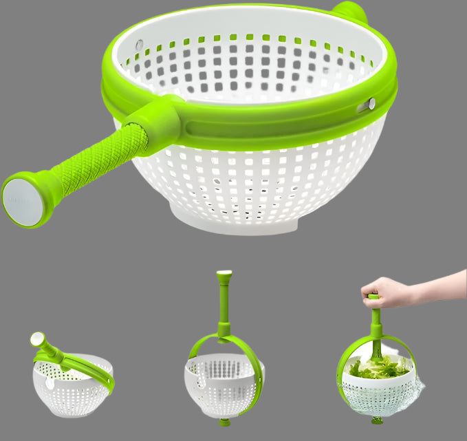 2-In-1 Spina Straining Colander for Salad Fruit Vegetable Lettuce - White/Green